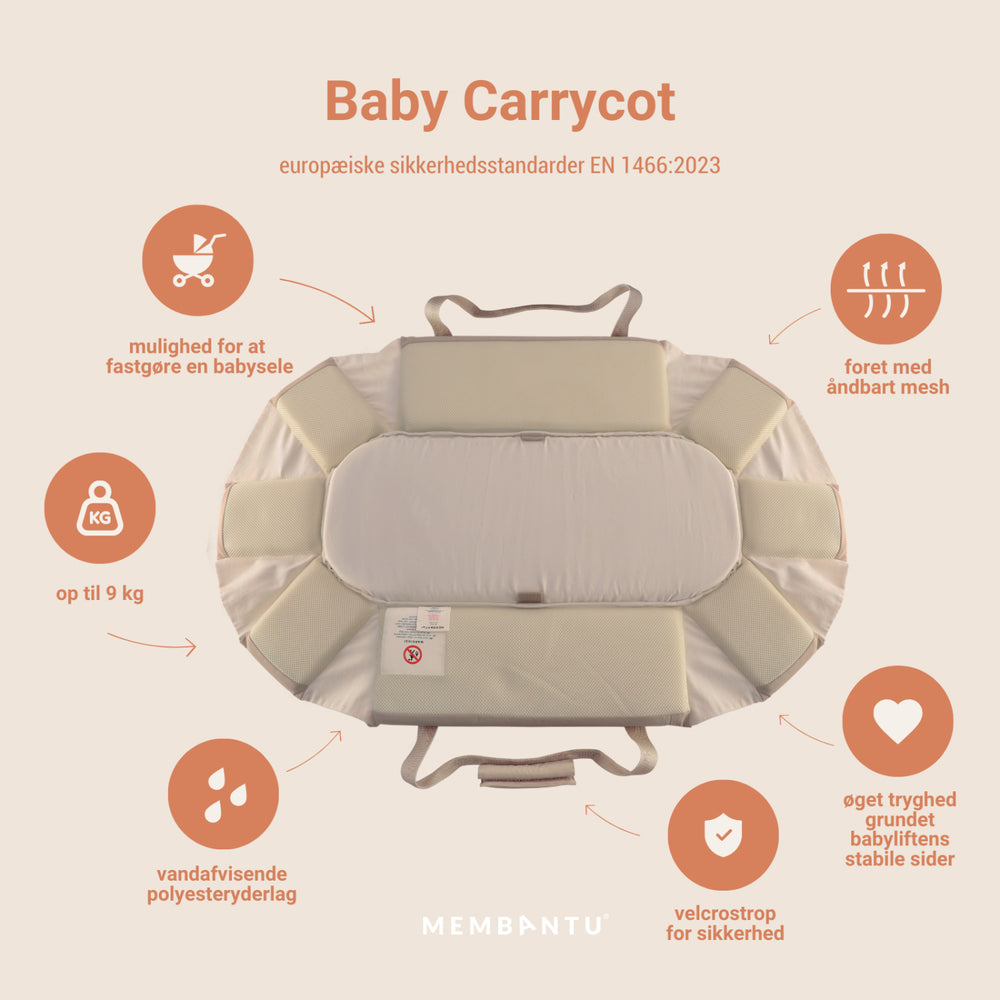 Giv dit barn den tryggeste start med MEMBANTU Nature Babylift. Denne multifunktionelle babylift garanterer maksimal komfort og sikkerhed, uanset om I er hjemme, i bilen, eller på farten. Det bløde polyesteryderlag og det ventilerende airmesh indvendigt sørger for behagelige og sikre forhold for din lille. Passer perfekt i både slyngevugger og vogne, hvilket gør overgange fra søvn til aktivitet uproblematiske. En nem løsning for travle forældre, der værdsætter komfort, sikkerhed og fleksibilitet.