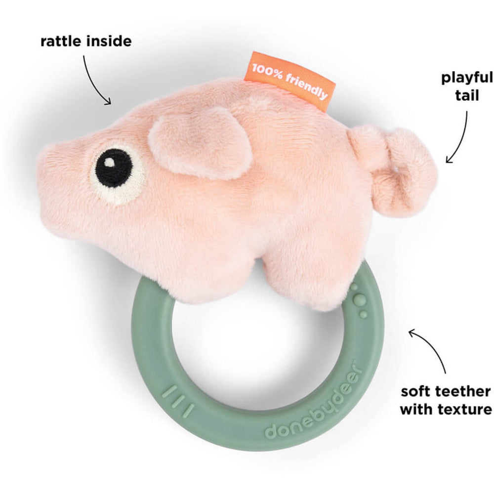 Oplev den charmerende DonebyDeer Farvemix Sanserangle med Bidering Pigee, perfekt til de små hænder. Denne rangle er designet med fokus på sikkerhed og holdbarhed, samtidigt med at den stimulerer barnets sanser og motorik. Let at gribe for små fingre, den tilbyder også en bidering, der er ideel til tandfrembrud. Den kompakte størrelse gør den nem at tage med overalt og opbevare. Sikker, uddannelsesmæssig og sjov – en fantastisk måde at engagere og underholde dit barn på.