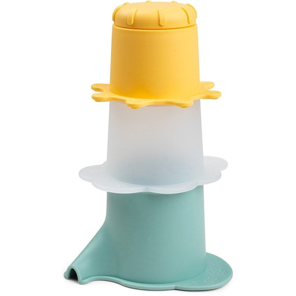 Perfekt til både indendørs og udendørs leg Indeholder en blå kop formet som Elphee, en halvgennemsigtig hvid kop formet som en sky med huller i bunden, og en gul kop formet som en sol med en åbne- og lukkefunktion