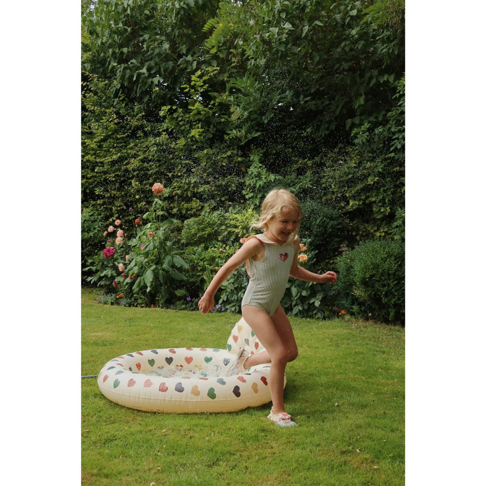 Gør stranddagen ekstra sjov med Konges Sløjd Blue Stripe Gina badedragt! Denne charmerende dragt er designet til den lille vandhund og byder på en sød blåstribet mønstring. Skabt af 80% GRS-certificeret genanvendt polyester og 20% elastan, sikrer den en behagelig pasform med god strækbarhed. CE-mærkningen garanterer høj sikkerhedsstandard. En ideel kombination af stil, komfort og miljøhensyn, perfekt til leg og svømning.
