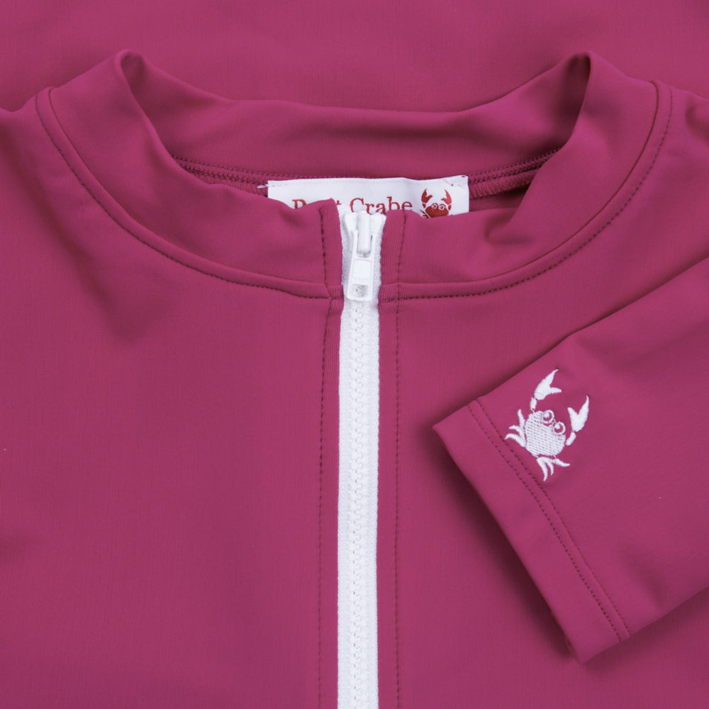 Denne Petit Crabe Mulberry Combi badeheldragt giver optimal solbeskyttelse med UPF 50+ og er fremstillet af 75% resirkuleret materiale. UV-dragten har lange ærmer, korte ben, en praktisk YKK lynlås og en charmerende lille broderet krabbe. Det hurtigtørrende materiale sikrer komfort og bekvemmelighed for dit barn under leg og svømning.