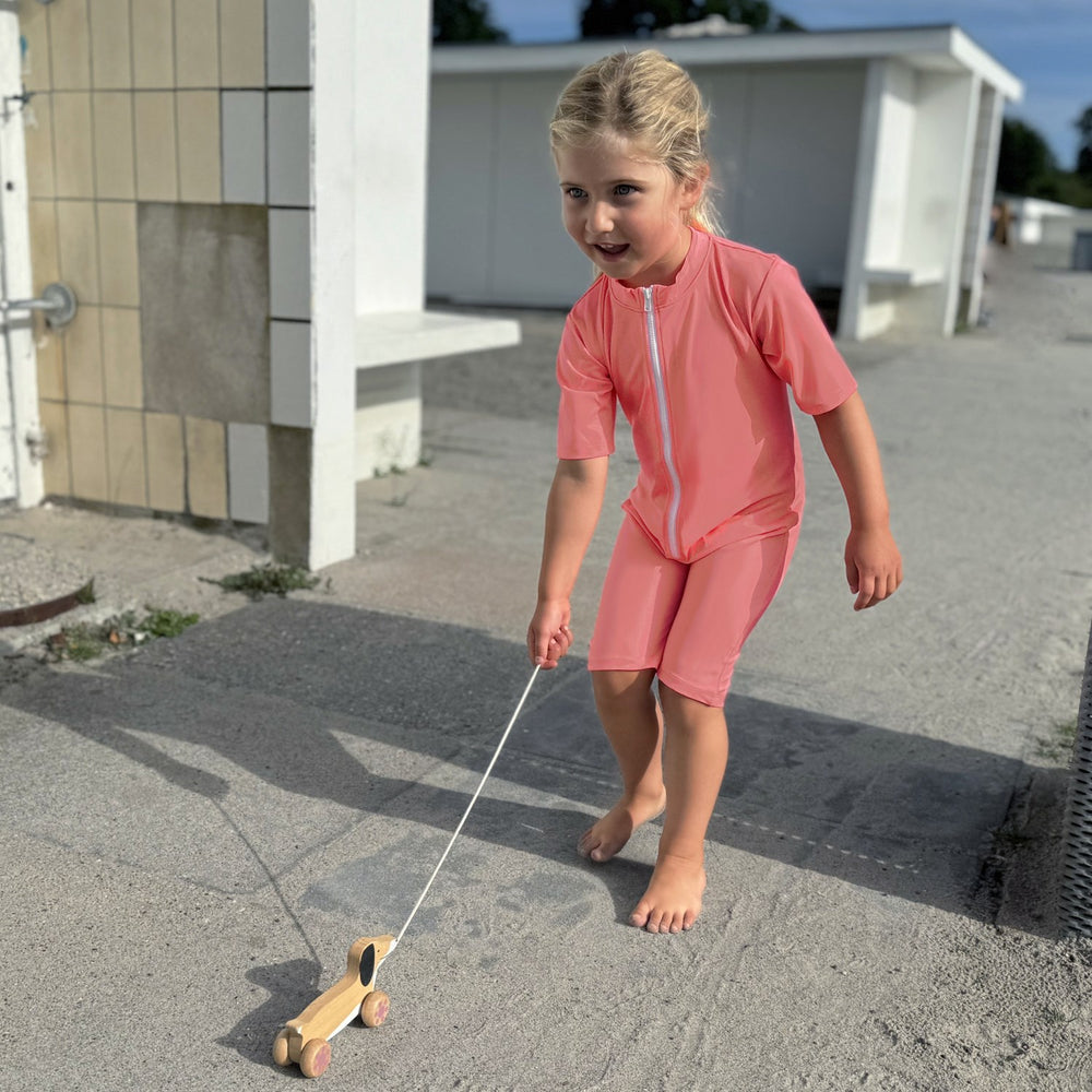 Denne Petit Crabe Tropicana Noe Heart badeheldragt garanterer maksimal solbeskyttelse med UV-filter UPF 50+. Dragten, med dens charmerende hjerteapplikation og praktisk YKK lynlås, er fremstillet af 75% genanvendelige materialer og åndbart, Oeko-Tex certificeret stof. Hurtigtørrende og komfortabelt design, ideelt til leg og svømning. Dansk designet og produceret i Europa, sikrer holdbarhed og kvalitet for den bevidste forbruger.