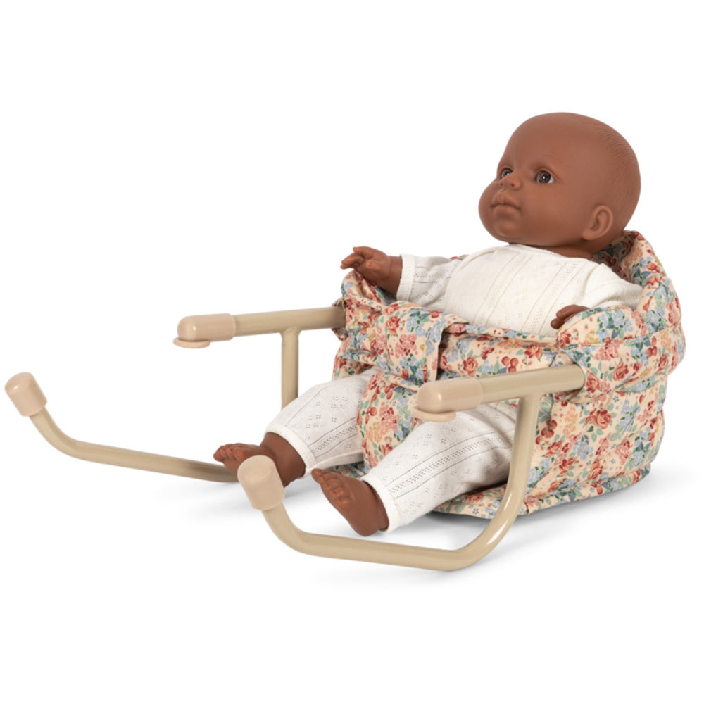 Giv dit barns dukke den perfekte siddeplads med Konges Sløjd Vienna Dukkebordstol. Fremstillet i 100% quiltet bomuld og støttet af en solid strygejernsramme, sikrer denne dukkestol både holdbarhed og stil. Med et let fastgørelsessystem kan stolen nemt monteres på ethvert bord, hvilket gør den ideel til spisetid eller legetid. Det elegante design med kammuslingekanter tilføjer en charmerende finish. En oplagt mulighed for at fremme rollespil og sociale færdigheder, mens I nyder familiens samvær.