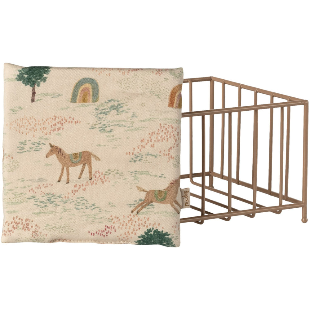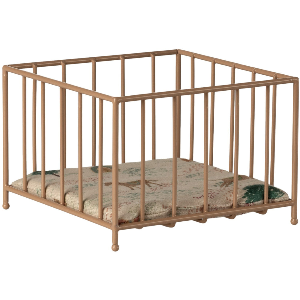 Giv dit barns dukker den ideelle legeplads med Maileg Kravlegård, Mikro i mørk rosa. Designet til at passe kaniner og harer i Micro-størrelse, sikrer denne kravlegård, at dukkerne kan lege i sikre og charmerende omgivelser. Fremstillet af holdbart metal og udstyret med en blød madras med Maileg's signaturstof, kombinerer den funktionalitet med æstetisk appel. Denne kravlegård er nem at placere i ethvert børneværelse og lover timevis af fantasifuld leg. Et smukt og sikkert tilbehør, der understøtter kreativ udvikling og tilfører stil til legen.