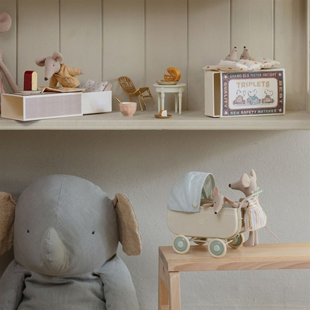 Maileg Micro Barnevogn Blue er i restordre og vil blive sendt, så snart det er på lager igen.