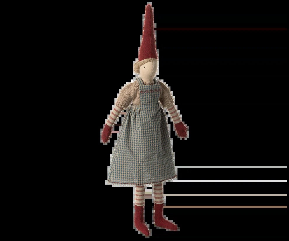 Med en Maileg Pixy dukke får dit barn en charmerende ven, der inspirerer til kreativ leg og styrker sociale færdigheder. Disse håndlavet stofdukker er designet i holdbart materiale, hvilket sikrer lang levetid og nem vedligeholdelse. Passende fra 3 år, er de små nok til at blive båret på eventyr udenfor hjemmet, men også ideelle til rolige stunder indendørs. Hver dukke opmuntrer til rollespil og samspil, hvilket forbedrer børns evne til empati og kommunikation. En hyggelig tilføjelse til ethvert børneværelse, der skaber glæde og nærvær i familielivet.