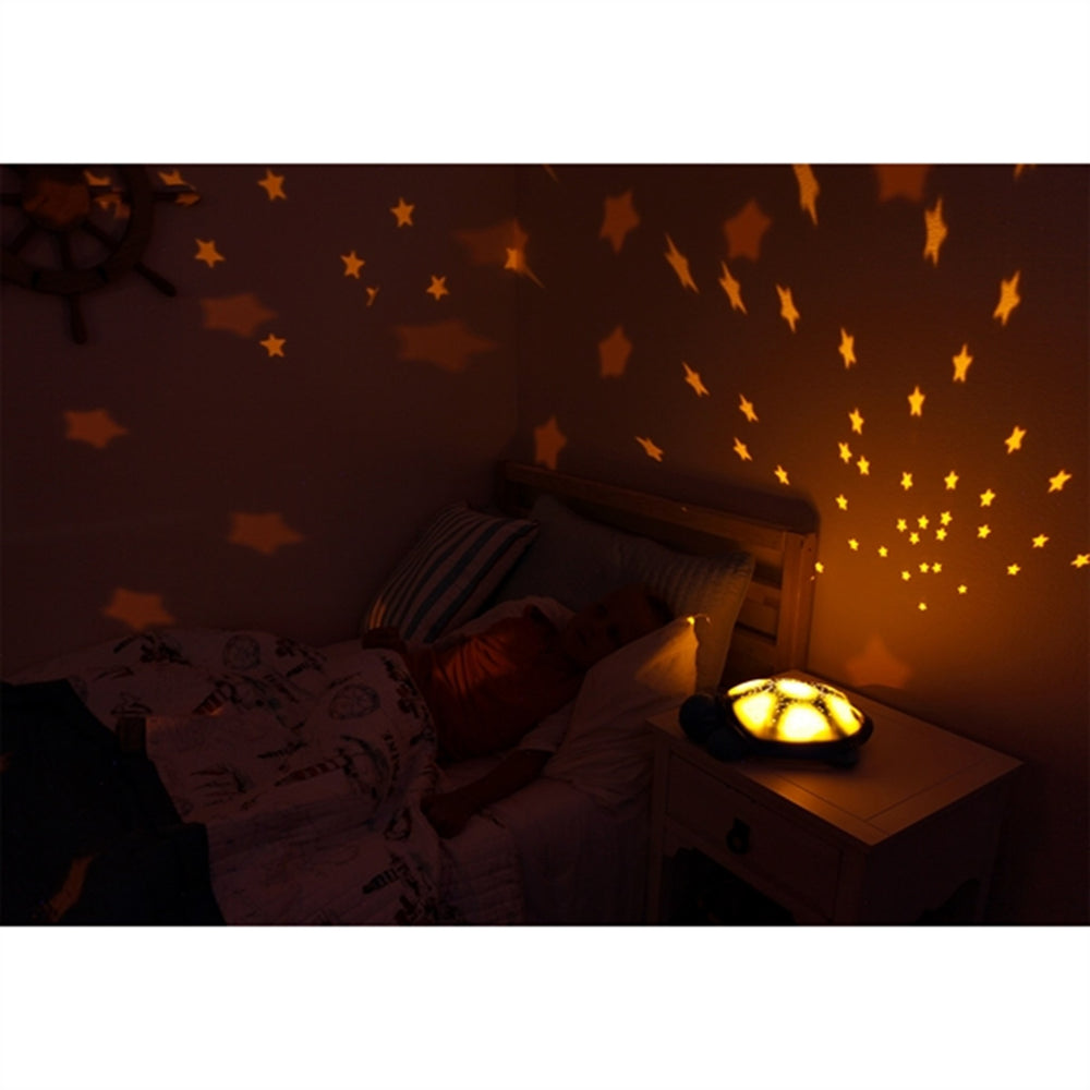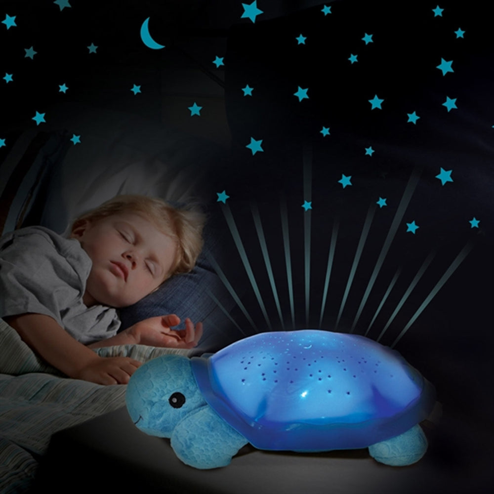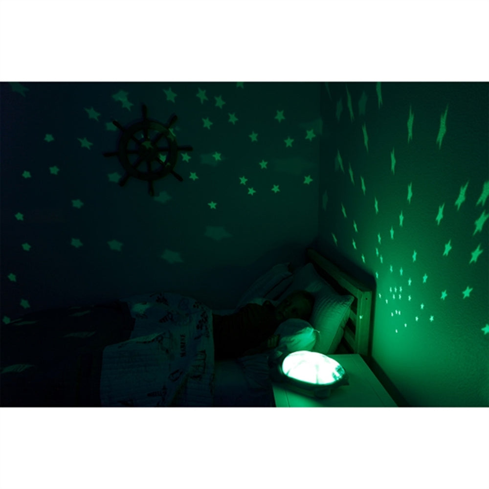 Cloud B Twilight Turtle Natlampe Blå er den perfekte ledsager for dit barn ved sengetid. Denne charmerende skildpadde projicerer stjernehimmel direkte på børneværelsets loft, hvilket skaber en beroligende atmosfære, der hjælper dit barn til at falde til ro og sove trygt. Med sin batteridrevne konstruktion er skildpadden både let at placere og flytte rundt, hvilket gør den ideel til både hjemmebrug og som rejsekammerat. Produktet er fremstillet af holdbart og sikkert materiale, så du som forælder kan være tryg ved at lade dit barn bruge den. Twilight Turtle tilfører ikke kun magi til sengetid, men styrker også familiens samvær ved at skabe en fredfyldt rutine.