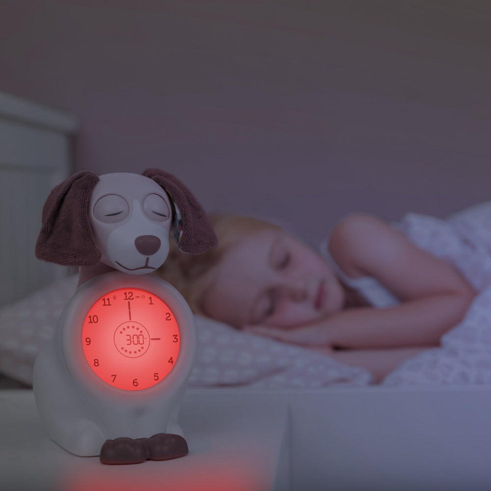 Zazu Pink Davy The Dog Søvntræner hjælper effektivt dit barn med at forstå og respektere sove- og vågnetider ved hjælp af enkel visuel vejledning. Davys øjne lukker og åbner sig for at signalere sengetid og morgenvågning, mens dens natlampe ændrer farve for tydeligt at markere de forskellige tidsintervaller i løbet af natten. Denne innovative natlampe er designet til at imødekomme både små børns behov for tryghed i mørket og forældrenes behov for mere uforstyrret søvn. Davys funktioner som et vækkeur med justerbar lydstyrke og lysintensitet gør den ideel til børn i forskellige aldre. Davy bidrager til en mere forudsigelig og afslappende nat for hele familien.
