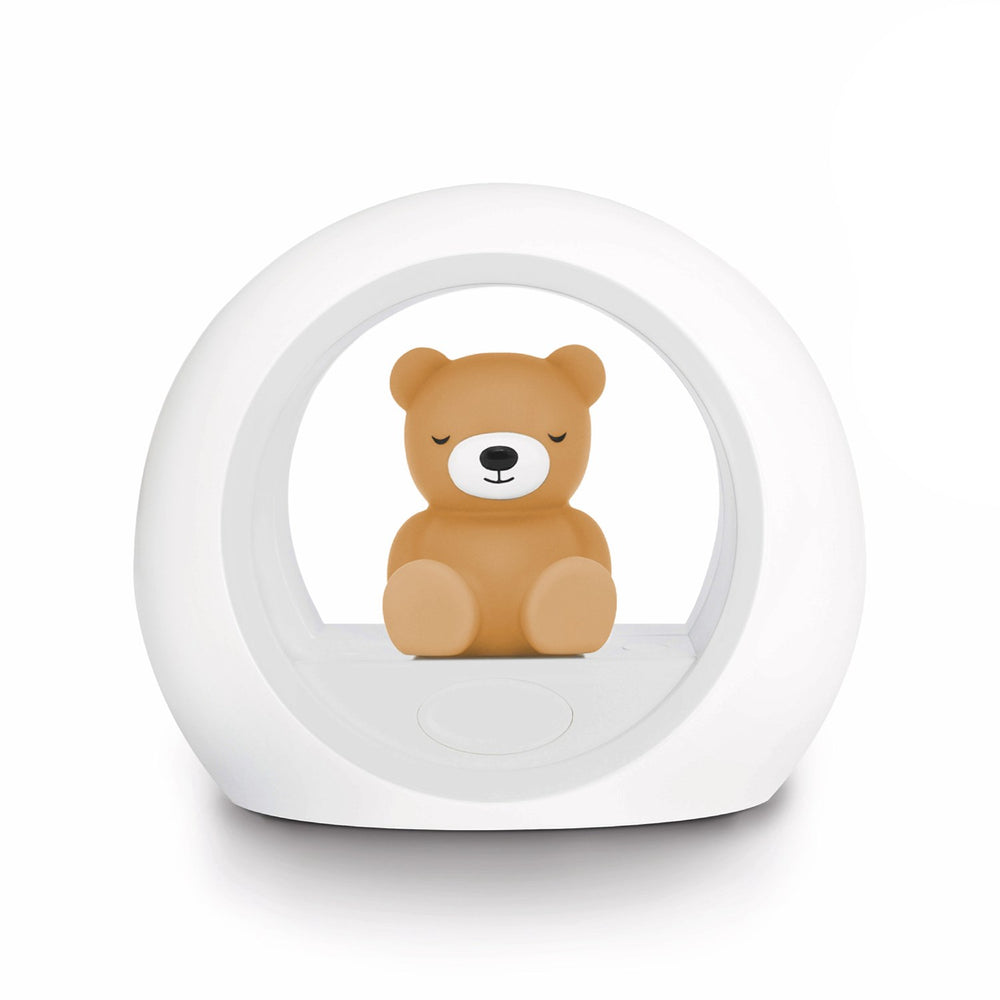 Billy Bjørn Natlampe er en tryghedsskabende løsning til børneværelset og tilbyder både funktionalitet og komfort. Med både bjørn- og ringelys, der kan justeres uafhængigt, tilpasser Billy sig nemt til forskellige behov, fra læselys til en beroligende natlampe. Featuring en smart stemmesensor, aktiverer Billy automatisk lyset ved lyde som barnets gråd, hvilket bringer øjeblikkelig ro. Lampens timer kan indstilles til automatisk at slukke, hvilket sikrer en uforstyrret nattesøvn. Billy, tilgængelig i både grøn og gul, integreres ubesværet i ethvert rum, hvilket gør sengetid til en hyggeligere oplevelse for hele familien.