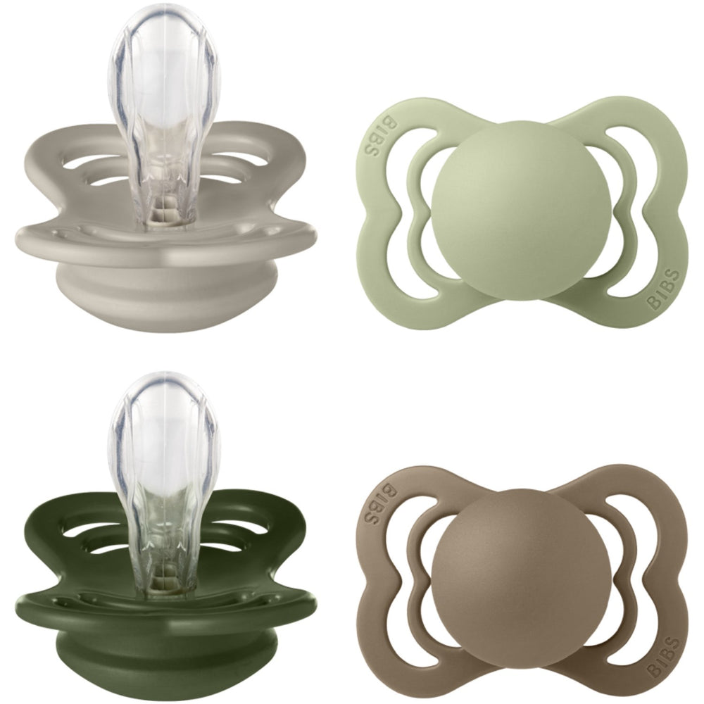 Bibs Sand/Sage/Hunter Green/Dark Oak Sut Supreme 4-Pak Silikone - Size 1 er i restordre og vil blive sendt, så snart det er på lager igen.