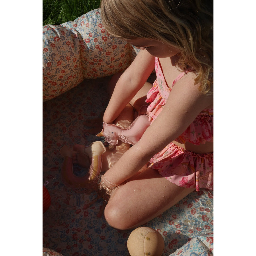 Konges Sløjd præsenterer Rainbow Sløjfe Manuca Flæse Bikini, designet til at kombinere stil og miljøvenlighed. Vores bikini er fremstillet med 80% GRS-certificeret genanvendt polyester og 20% spandex, sikrende både holdbarhed og fleksibilitet. Komforten er i top med OEKO-TEX® STANDARD 100, klasse 1-certificering, der garanterer, at materialerne er sikre og bløde mod børns sarte hud. Med flotte flæsedetaljer på både top og bund tilføjer denne bikini et legende og charmerende touch til sommergarderoben.