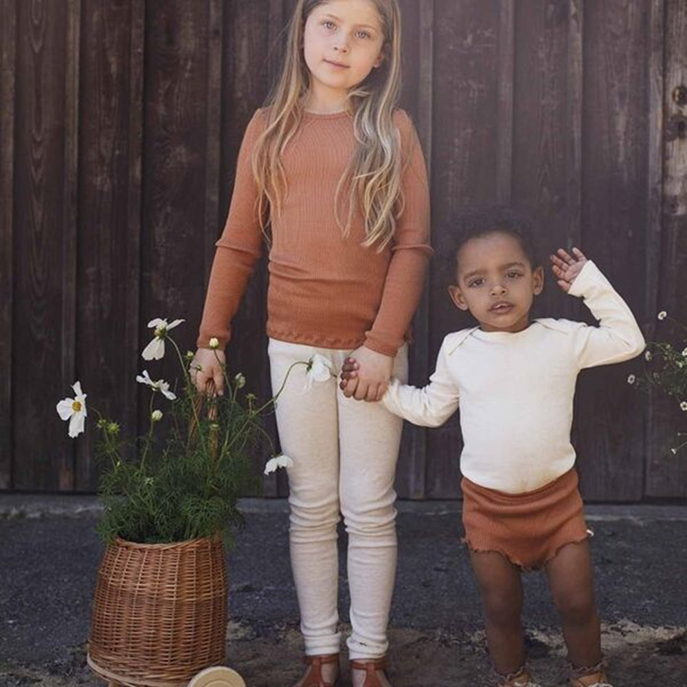 Oplev Minimalisma Bloomers Babla i charmerende rooibos-farve, perfekt til dit barns garderobe. Disse bloomers er fremstillet i blød økologisk bomuld, der sikrer komfort hele dagen. Med sit tidløse design og elastiske fit, tilpasser de sig nemt til barnets bevægelser. Ideelle til både leg og afslapning.