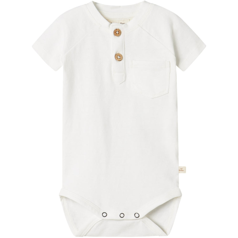 Gør hverdagstøj til en leg med Lil'Atelier Coconut Milk Dolan Joe Body. Denne bodystocking fremstillet i blødt og strækbart jersey-materiale sikrer din lille komfort og frihed til at bevæge sig. Det lette design inkluderer en bedstefarkrave, korte ærmer og praktisk knaplukning samt en trykknap, der gør påklædningen nemmere. Den diskrete brystlomme tilføjer et stilfuldt touch, mens etiketten giver den et autentisk præg. Perfekt til leg og afslapning.