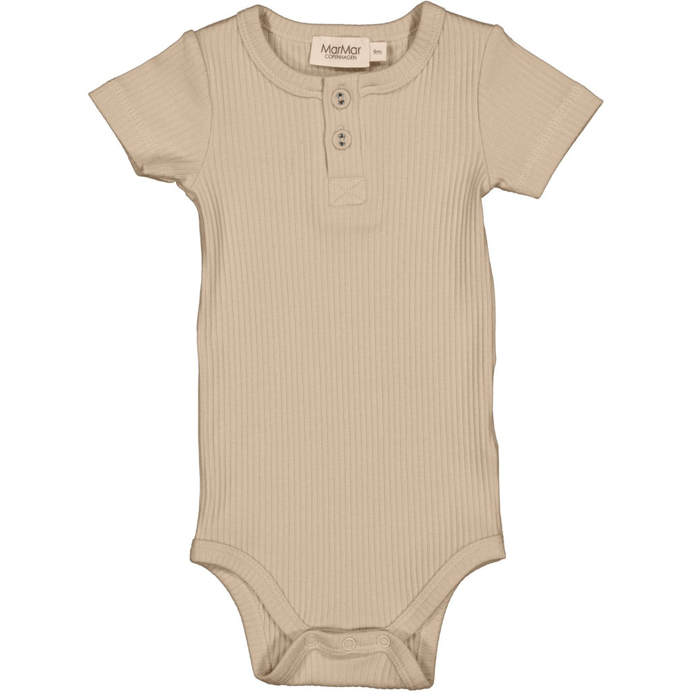 Denne kortærmede MarMar Modal Stone Wall Body er designet med en praktisk stolpe knaplukning og trykknapper mellem benene, hvilket gør bleskift nemmere. Fremstillet i ribstrikket modal med elastan, garanterer den både komfort og holdbarhed. Materialet er Oeko-tex® certificeret, fri for skadelige kemikalier. Vores Modal styles opdateres med nye farver hver sæson, og denne i Stone Wall nuance kombinerer stil med funktionalitet.