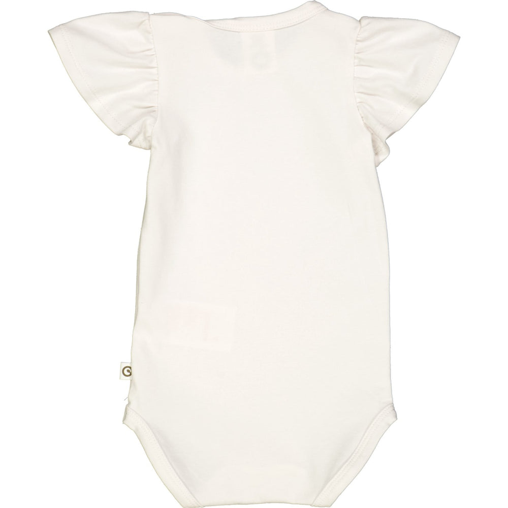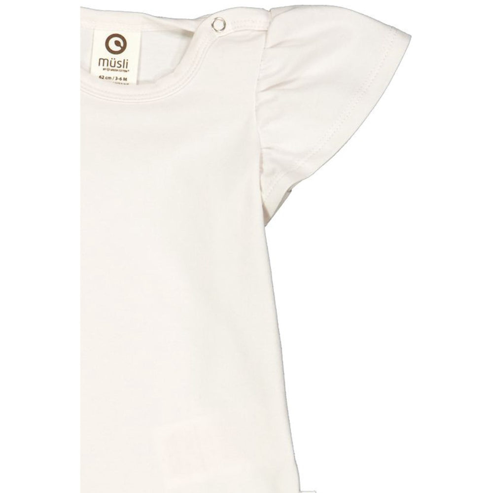 Denne charmerende Müsli Balsam Cream Cozy Me Flæse Body med korte ærmer prydet med flæser, kombinerer stil og komfort. Fremstillet af blød, strækbar single jersey inklusiv 5% elastan, sikrer det en behagelig, holdbar pasform. Trykknapper ved nakken og forneden forenkler påklædning. Bodien er fremstillet af 95% GOTS Organic certificeret økologisk bomuld, hvilket garanterer en miljøvenlig produktion og etisk fremstilling. Ideel til hverdagsbrug og sikrer komfort hele dagen for de mindste.
