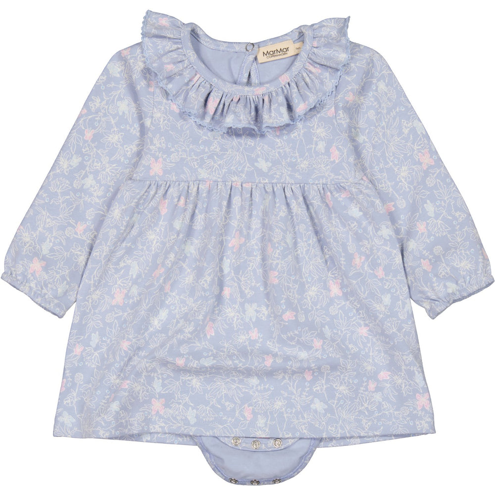 Denne charmerende MarMar Jersey Print Butterfly Meadow Raya kjole er designet med en praktisk bodystocking og lange ærmer, perfekt til småbørns aktive liv. Den elegante krave og smukke trykknapper bagpå og mellem benene gør bleskift let. Fremstillet i blød, strækbar jersey med elastan, sikrer denne kjole komfort og bevægelsesfrihed, samtidig med at åndbarheden og den høje kvalitet bevares. Øko-tex® certificeringen garanterer fravær af skadelige kemikalier.