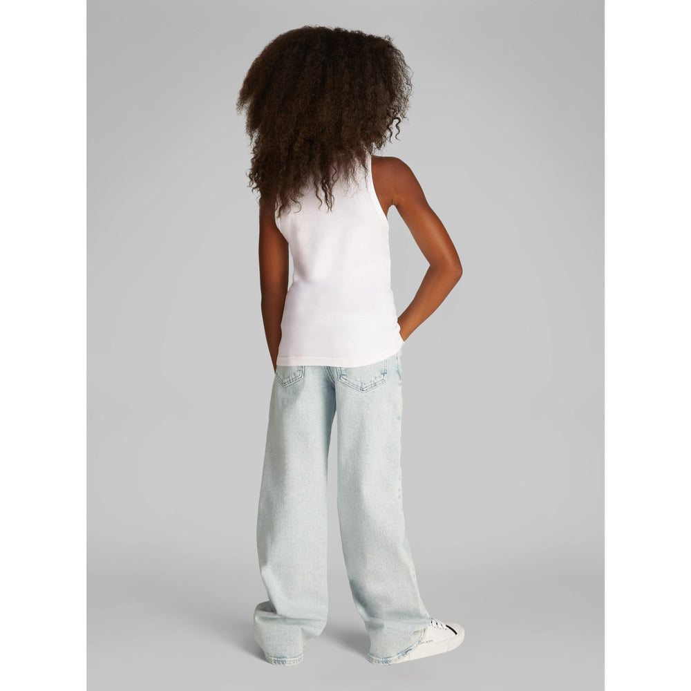 Denne Calvin Klein tanktop i strålende hvid er designet med det ikoniske CK logo, der tilføjer et moderne touch til dit barns garderobe. Fremstillet i behagelig økologisk bomuld, sikrer den en komfortabel pasform og nem pleje. Perfekt til både leg og afslapning.