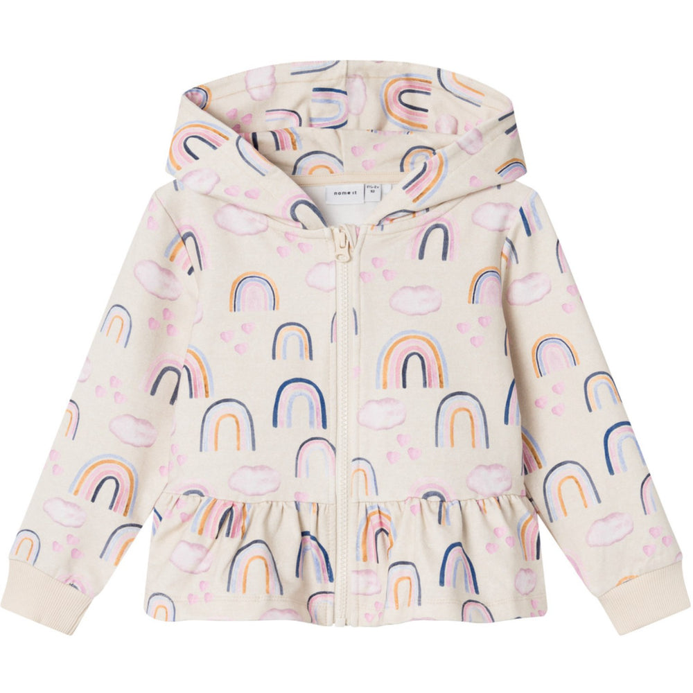 Giv dit barns garderobe et frisk pust med denne stilfulde Kathy Sweat Cardigan fra Name It i Peyote Melange. Cardiganen, fremstillet i blødt ubørstet sweatstof, sikrer en glat ydre overflade samtidig med at løkker på indersiden tilføjer ekstra komfort. Designet byder på en klassisk rund hals, praktisk lynlåslukning og lange ærmer, perfekt til køligere dage. Peplum-detaljen tilføjer et moderne touch, mens den regelmæssige pasform og det gentagne mønster over hele cardiganen giver både stil og funktionalitet.