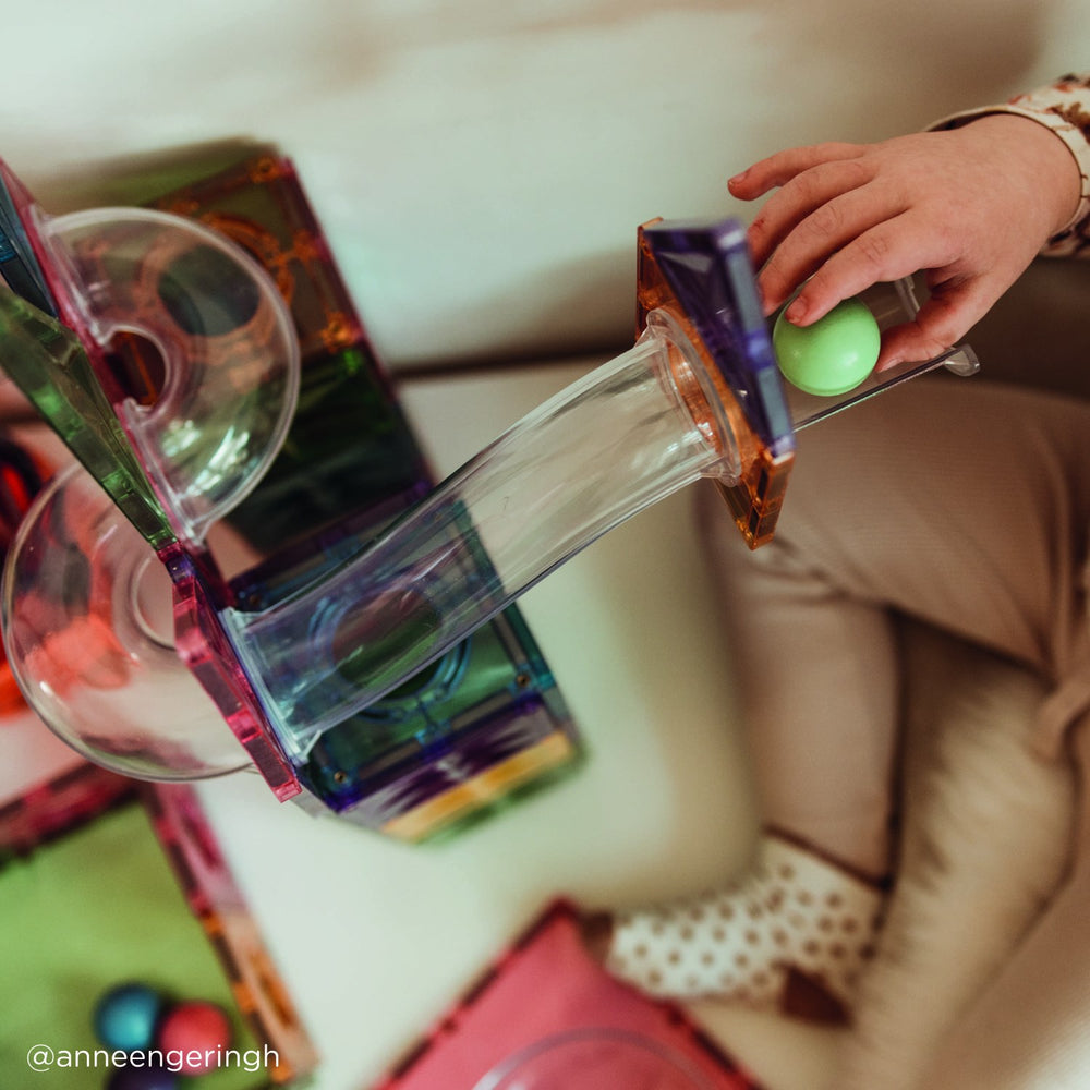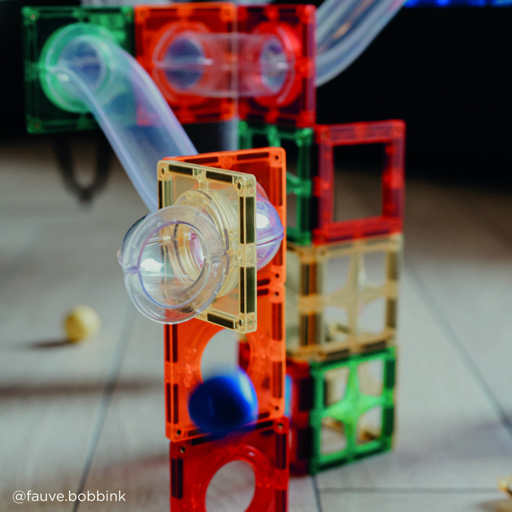 Giv dit barn timers kreativ leg med Cleverclixx Intense Ball Run Compact Pack. Dette sæt med 60 dele fremmer både logisk tænkning og finmotorik, når børnene bygger deres egne unikke boldbaner. Takket være de magnetiske fliser er sættet nemt at samle og tilbyder en sikker spilleoplevelse. Ideel til børn, som elsker at udforske og skabe, og passer perfekt til familiens mindste bygmestre.