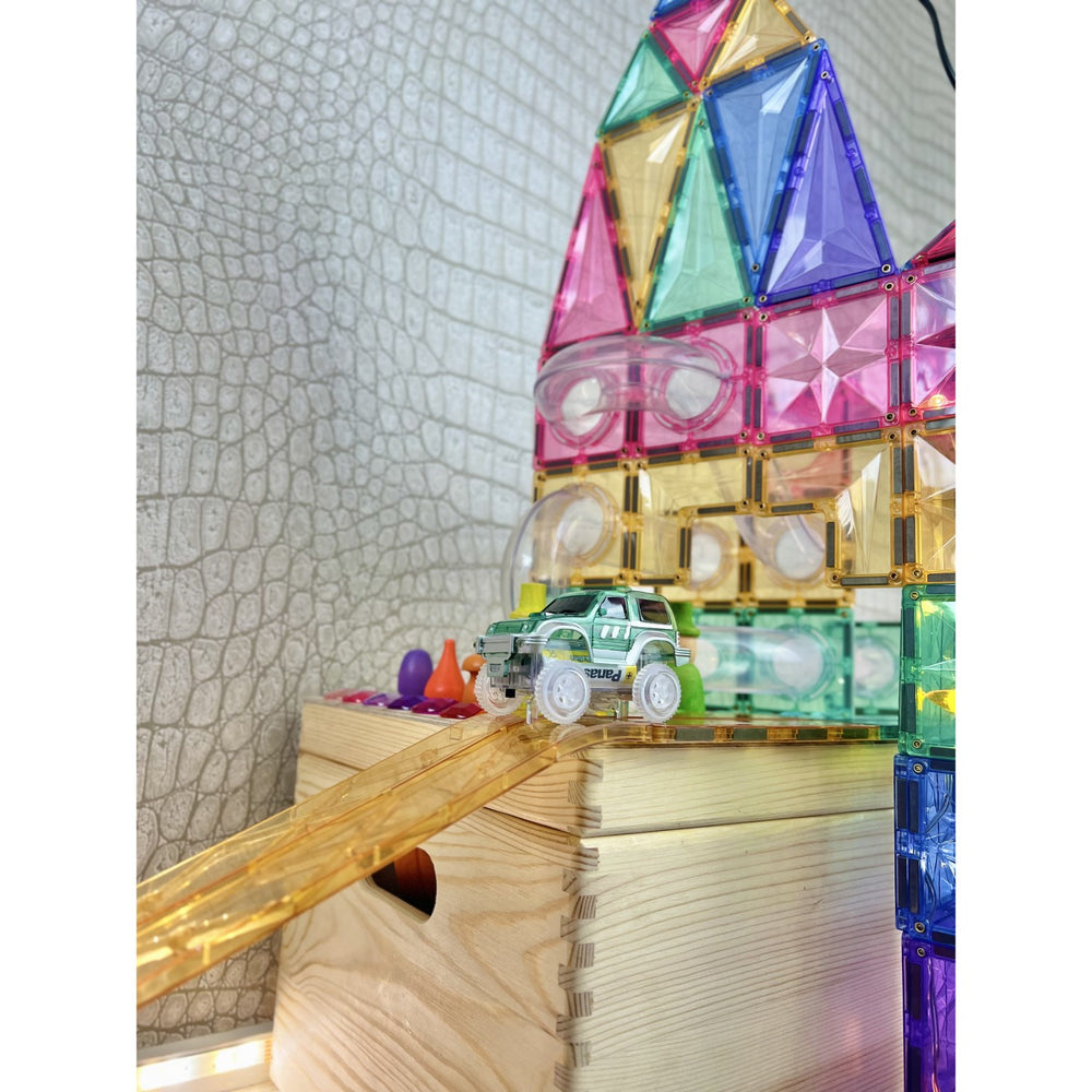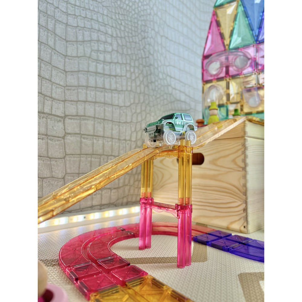 Giv dit barn timevis af kreativ leg med Cleverclixx Pastel Stor Racerbane. Dette magnetiske legetøj i blide pastelfarver består af 80 dele, der inkluderer trafikskilte, en bil og søjler, hvilket gør det muligt for børn at sammensætte deres helt egne unikke racerbaner. Designet til at fremme finmotorik og logisk tænkning hjælper dette sæt ikke kun med barnets udvikling, men sikrer også værdifuld tid sammen i familien. Perfekt til børn, der elsker at konstruere og lege med biler.