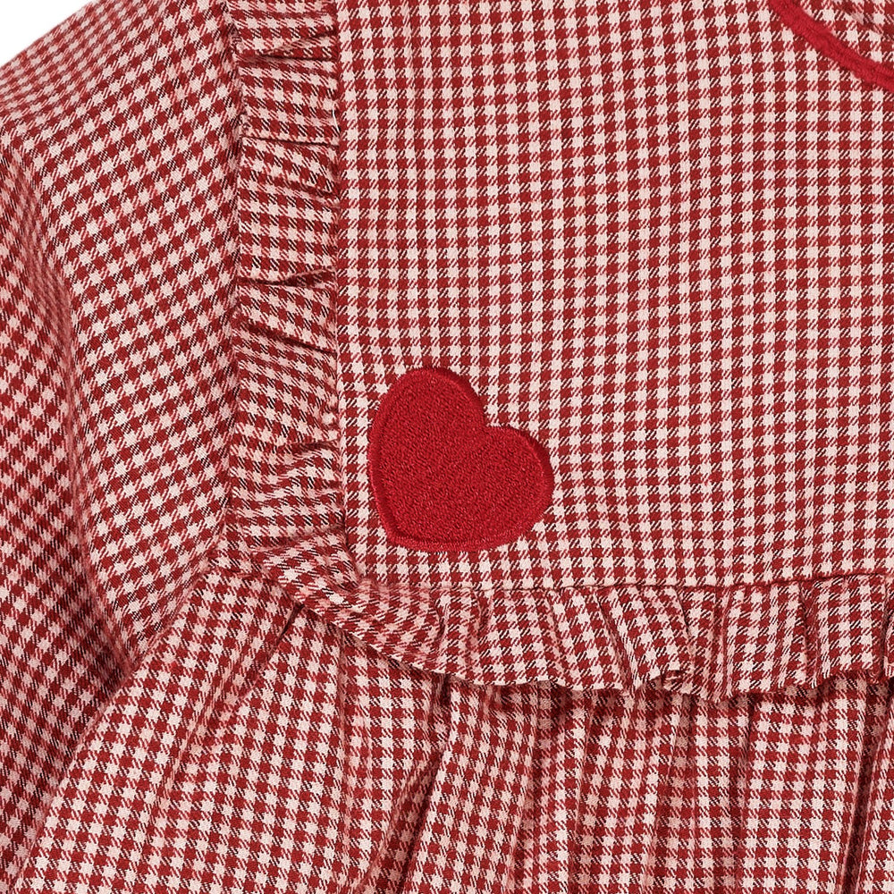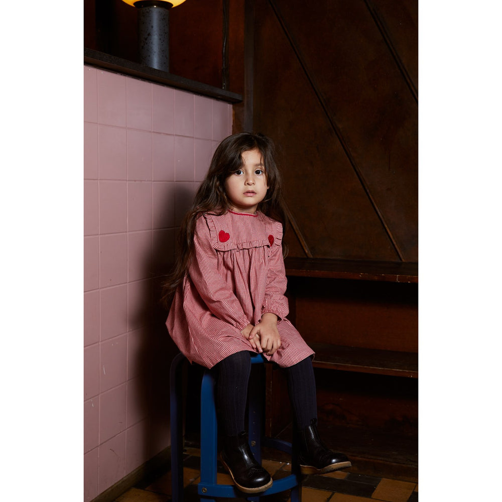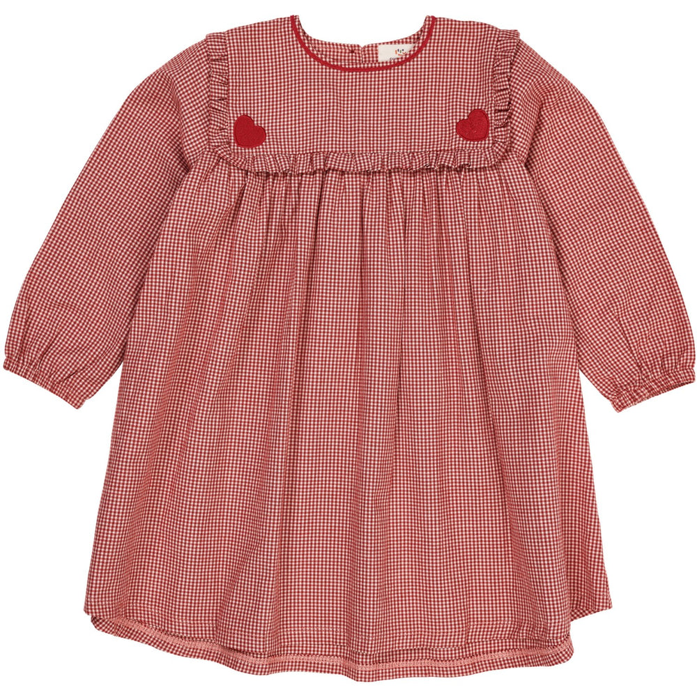 Copenhagen Colors x Luksusbaby Red Check Combi Check Kjole M. Hjertebroderi
