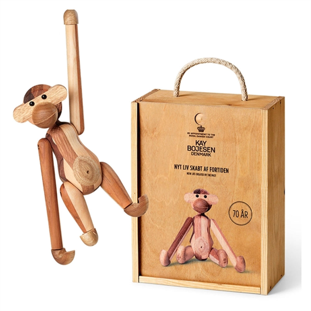 Giv dit barn en tidløs klassiker med Kay Bojesen Abe Reworked Jubilæum Lille Mix i Træ. Denne ikoniske træfigur, skabt første gang i 1951, er lavet af resttræ fra forskellige træsorter som teak, valnød og eg, hvilket giver hver abe et unikt udseende. Abens fleksible arme og ben tillader den at hænge charmerende på hylder eller grene, hvilket tilføjer et legesygt element til ethvert børneværelse. Velegnet som en meningsfuld gave til specielle lejligheder, denne håndlavede abe forbliver en skat i hjemmet, stimulerer kreativitet og bringer glæde til hele familien.