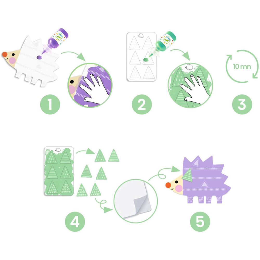 - Indeholder: 4 silhuetbrætter til at male, 4 ark med små klistermærkeformer til at løsne og male, 1 papirdug og en illustreret vejledning