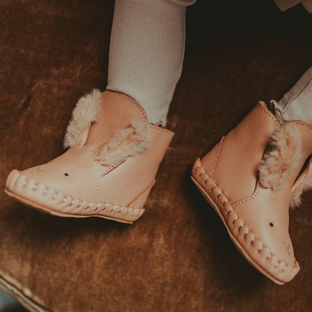 Opdag de charmerende Donsje Baby Kapi hjemmesko, perfekte til de kolde måneder. Disse hjemmesko er lavet med en eksklusiv foring, der holder små fødder varme og komfortable. Den søde kanin-design i en let rustfarve gør dem uimodståelige, og de bløde materialer sikrer en behagelig pasform. Velegnet til brug både hjemme og som futter, med et slidstærkt materiale der let kan plejes. Et must-have for de mindste denne vinter!