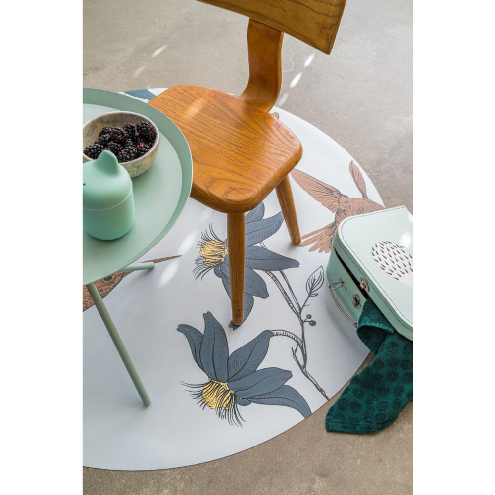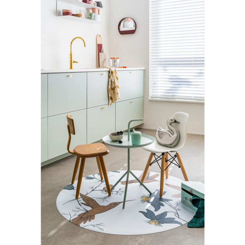 Everleigh & Me Hummingbird Blå Stoleunderlag er et ideelt valg for forældre, der værdsætter både funktionalitet og æstetik ved spisetid. Dette skridsikre underlag sikrer, at barnets stol står stabilt, og med en diameter på 105 cm giver det god dækning mod spild og snavs. Let at rengøre, rulles sammen for nem opbevaring, og er fremstillet af miljøvenligt PVC uden BPA og ftalater, hvilket gør det sikkert for dit barn at bruge.