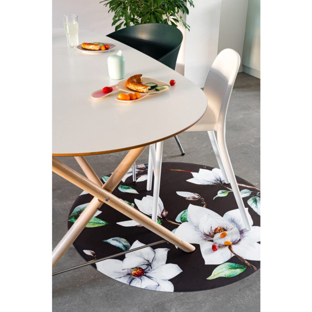 Gør måltiderne med børnene til en ren fornøjelse med Everleigh & Me Magnolia Burgundy stoleunderlag. Dette elegante underlag er ikke blot en fryd for øjet med sin dybe vinrøde farve, men også en praktisk løsning til at holde spisestuen ren. Underlaget er designet med en skridsikker bund, som sikrer, at det bliver liggende på plads, selv når små fødder skubber til stolen. Fremstillet af højkvalitets PVC, er det både let at rengøre og fri for skadelige stoffer som BPA og ftalater. Dets runde form på 105 cm i diameter dækker et stort område og kan nemt rulles sammen og gemmes væk efter brug, hvilket gør det til en ideel kompanion til hverdagens små og store udfordringer.