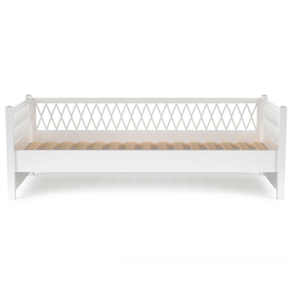 Giv dit barn den perfekte ramme for både hvile og leg med Cam Cam Copenhagen Harlequin Daybed White. Denne enkeltseng, i det klassiske Harlequin mønster, kombinerer stil med funktionalitet og sikkerhed. Fremstillet i Europa af FSC-certificeret træ og malet med vandbaseret maling, sikrer den både dit barns sundhed og komfort. Med mulighed for tilkøb af skuffemodul, tilbyder den også praktisk opbevaring. En ideel løsning, der vokser med barnet og beriger familiens hverdag.