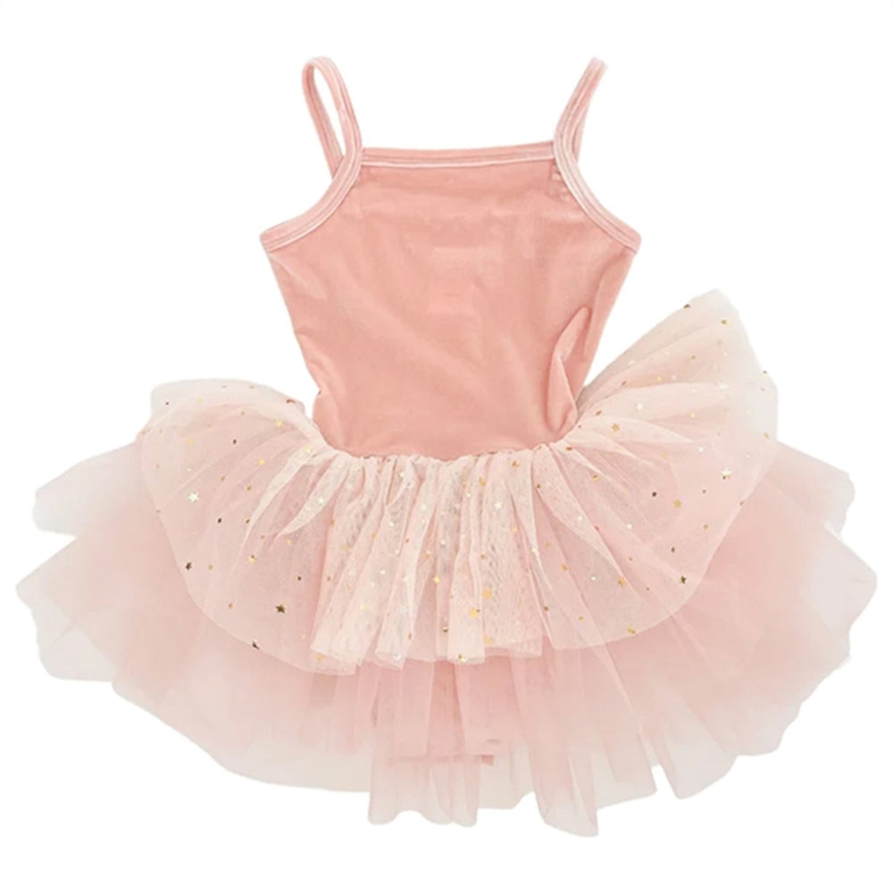 Dolly by Le Petit Tom Stars & Moon Velvet Leotard With Tulle Tutu Kjole Ballet Pink