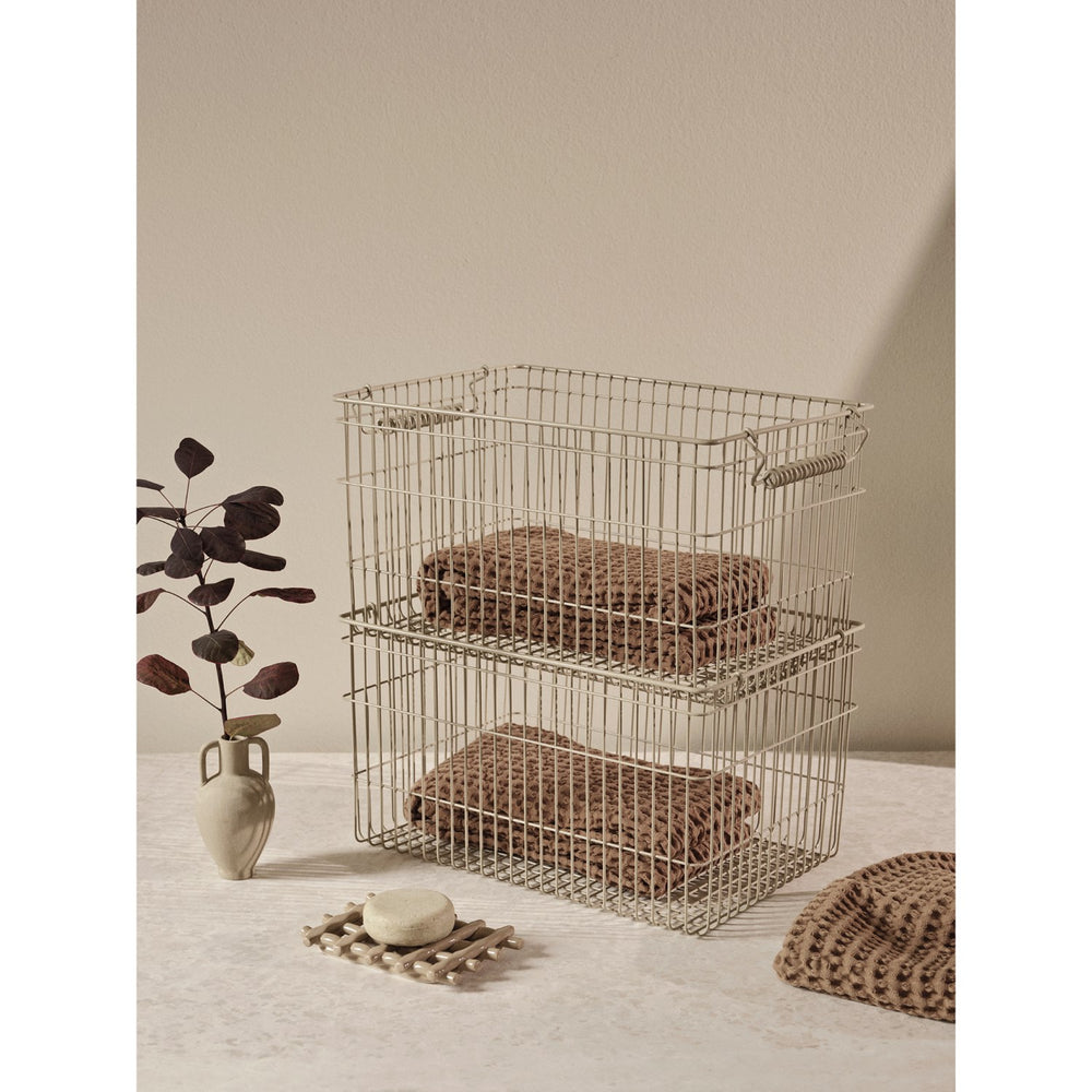 Ferm Living Cashmere Cala Stabel Kurve 2-pak tilbyder en stilfuld og praktisk løsning til opbevaring i hjemmet. Fremstillet i pulverlakeret jern, sikrer disse kurve holdbarhed og nem rengøring – perfekt til travle familier. Designet er både raffineret og funktionelt, med spiralformede metalhåndtag, der gør dem lette at flytte rundt på. Ideelle til alt fra legetøj på børneværelset til håndklæder i badeværelset, hjælper disse kurve med at holde dit hjem organiseret på en elegant måde.