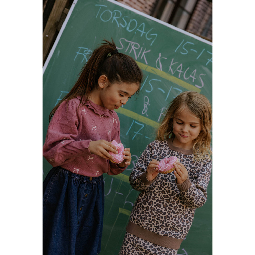 Præsenter dit barn for denne charmerende Fliink Ash Rose Alon Sløjfe Bluse, som er fremstillet i finstrikket kvalitet med en smuk støvet lyserød farve. Blusen skiller sig ud med sine nuttede små sløjfer og en feminin flæsekant omkring halsudskæringen. Designet inkluderer ballonærmer med ribmanchetter for at sikre både stil og funktionalitet. Materialekombinationen af 50% ECOVERO™ viskose, 27% nylon og 23% polyester sikrer, at blusen er både blød og varm, hvilket gør den ideel til leg og særlige anledninger. Let at vedligeholde, denne bluse egner sig perfekt til flere sæsoners brug og tilbyder komfort hele dagen.