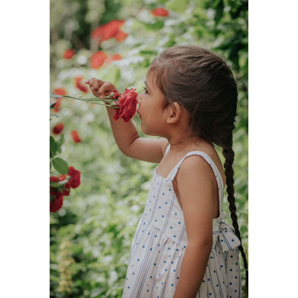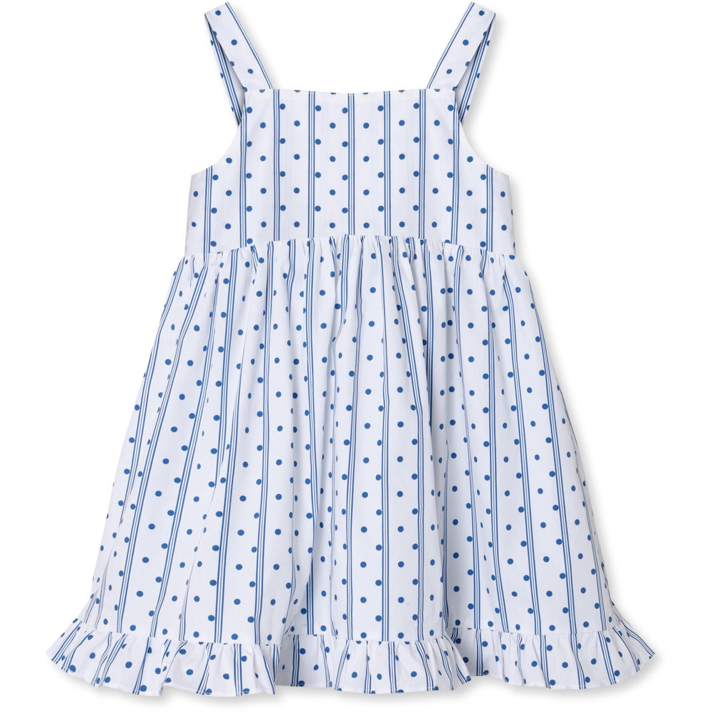 Denne charmerende Fliink Cloud Dancer Dot Aop Polka kjole er fremstillet i blødt økologisk bomuld, der sikrer optimal komfort for dit barn. Med sit legende polkaprikkede mønster og luftige design er denne kjole perfekt til enhver lejlighed. Nem at vedligeholde og fantastisk til både daglig brug og festlige begivenheder.