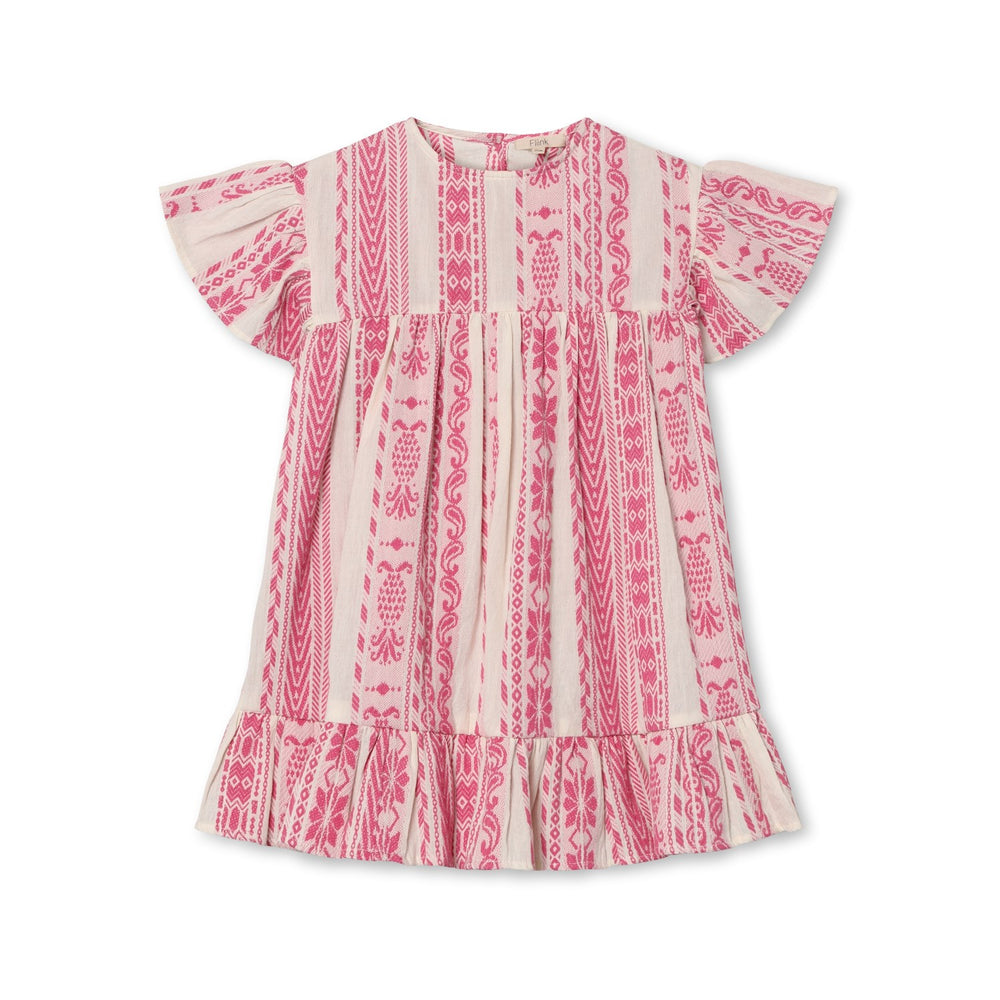 Denne charmerende Addie kjole i "Cloud Dancer Pink Stripe" er ideel til enhver lejlighed. Fremstillet af blød økologisk bomuld, sikrer denne kjole komfort hele dagen. Designet er både stilfuldt og praktisk med en behagelig pasform og lette plejeinstruktioner. Perfekt til leg eller fest.