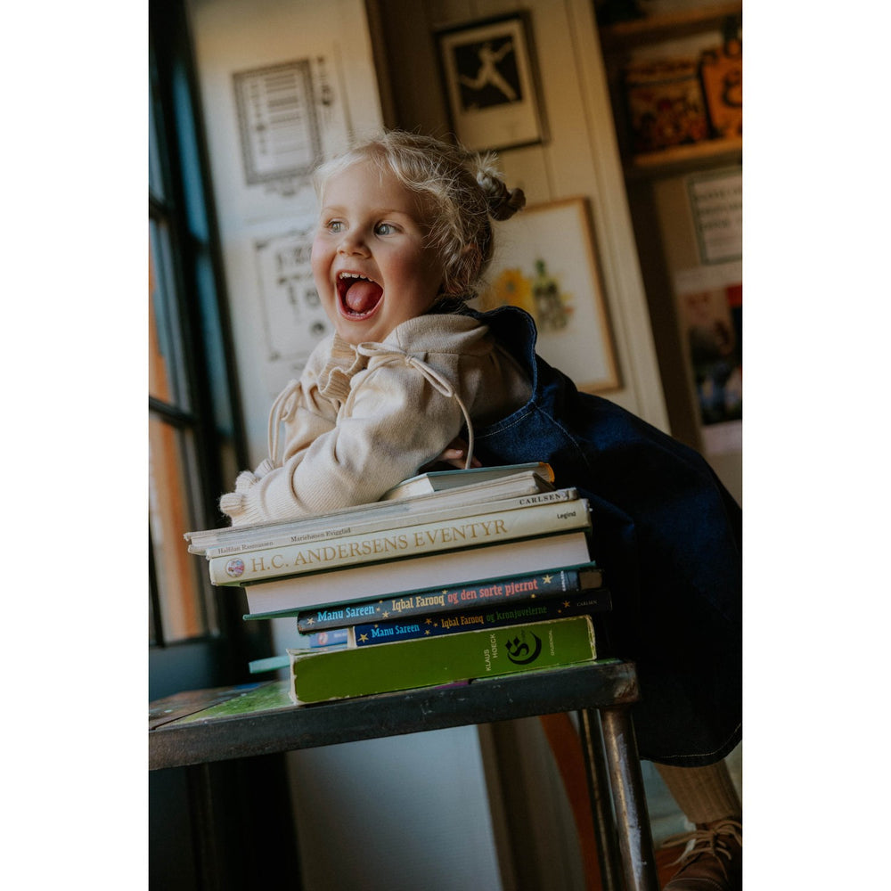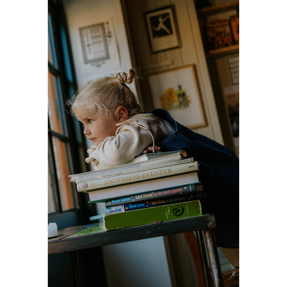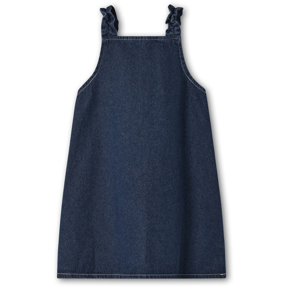 Denne søde Spencer kjole i mørkeblå denim er perfekt til din lille eventyrer. Fremstillet af 100% bomuld, sikrer den både komfort og holdbarhed. Det A-formede snit og rynkeeffekt ved stropperne tilføjer et feminint touch, samtidig med at det giver frihed til leg og bevægelse. Kjolen er praktisk med en lille lomme på brystet og nem at vedligeholde – maskinvask ved 30°C. Style den med en KENNA BLOUSE for et fuldendt look.
