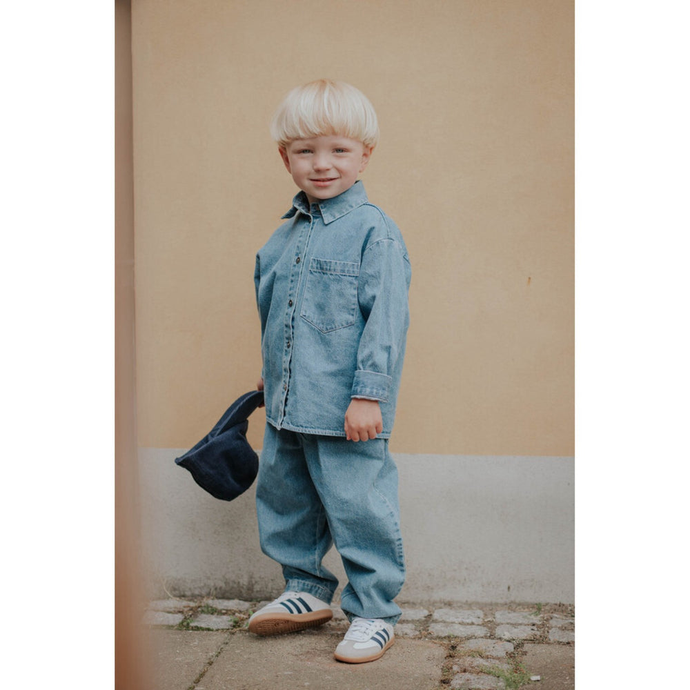 Oplev den alsidige Fliink Lys Denim Blue Don Ls Skjorte til børn, fremstillet i 100% blødt bomuld for ultimativ komfort og holdbarhed. Med et smart og oversize look, denne langærmede skjorte funktionerer både som en stilfuld cardigan og en traditionel skjorte, komplet med klassisk krave og metalknapper. Den er praktisk med en enkelt brystlomme og tilbyder en legesikker løs pasform. Nem at vedligeholde, den tåler maskinvask ved 30°C på en skånsom cyklus. Perfekt til hverdagsbrug eller særlige lejligheder.