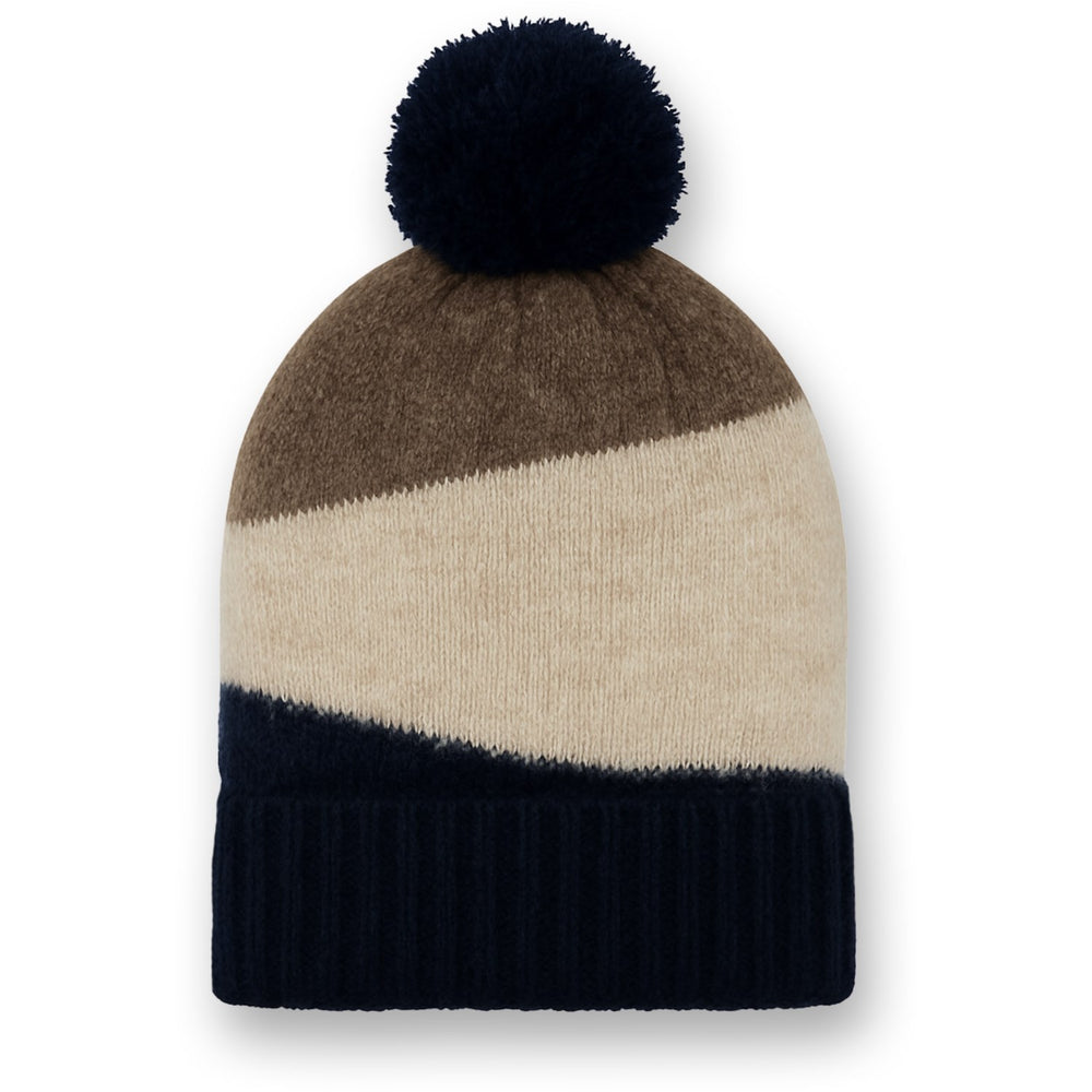 Denne strikkede hue holder dit barn varmt og stilfuldt i al slags vejr. Lavet med 33% alpaca og 32% uld, kombinerer den optimal varme med holdbarhed takket være tilføjelsen af 32% nylon og 3% spandex. Huen præsenteres i et iøjnefaldende farveblokerende design med dynamiske linjer og en charmerende pom-pom, der fuldender looket. Dens dobbeltlags ribkant sikrer ekstra isolering mod kulden. Perfekt til vinterens eventyr, og skal håndvaskes for at bevare dens kvalitet og udseende.