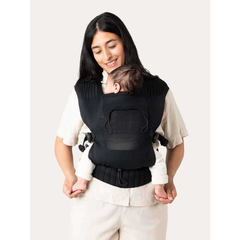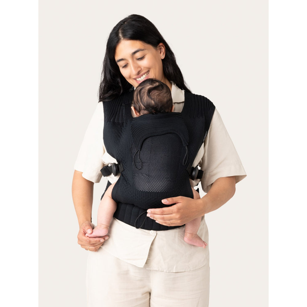 Med Flybaby Black Bæresele får du bekvemmelighed og frihed for både dig og dit barn, uden at gå på kompromis med sikkerhed eller komfort. Denne lette bæresele, der vejer kun 425 g, gør det nemt at medbringe på dagsture og kan foldes ned til en kompakt størrelse (30x10x10 cm). Designet med OEKO-TEX certificeret garn af 100% genanvendt polyester, tilbyder Flybaby både åndbarhed og robust støtte med sit innovative 3D-stof.