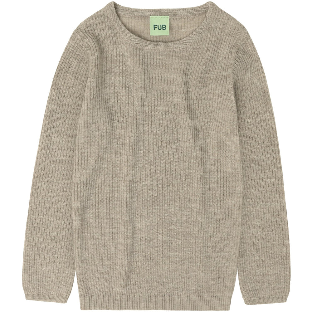Denne langærmede bluse fra FUB er strikket i en klassisk ribstruktur, der giver en slank og lige pasform, perfekt til børnenes hverdagsgarderobe. Fremstillet af 100% certificeret merinould, sikrer den både komfort og kvalitet uden skadelige kemikalier. Det miljøvenlige garn er behandlet til nem maskinvask. Farven oat melange tilføjer et stilrent touch, mens de smalle ribkanter fuldender looket.