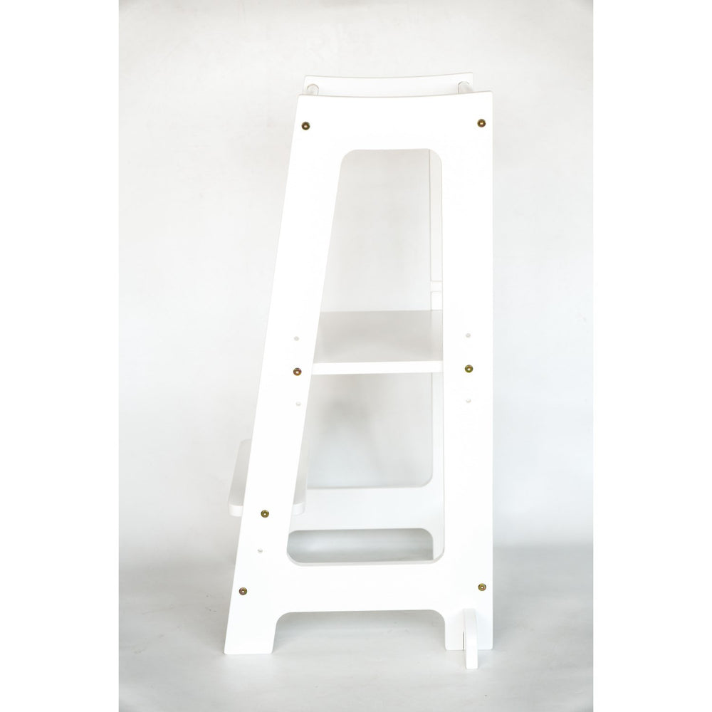 Martin Justerbart Læringstårn fra HEMMINGSEN Kids kombinerer sikkerhed og fleksibilitet i et stilrent hvidt design. Tårnet er fremstillet med økologisk lak på miljøvenligt træ, hvilket sikrer en holdbar og letrengørlig overflade. Med tre indstillingsmuligheder i højden kan det tilpasses efterhånden som dit barn vokser, og til forskellige højder på borde og køkkenøer. Det ergonomiske design og den justerbare ståplade fremmer selvstændighed, da barnet selv kan kravle op. Et ideelt redskab til at involvere børn sikkert i køkkenaktiviteter og styrke familie samværet.