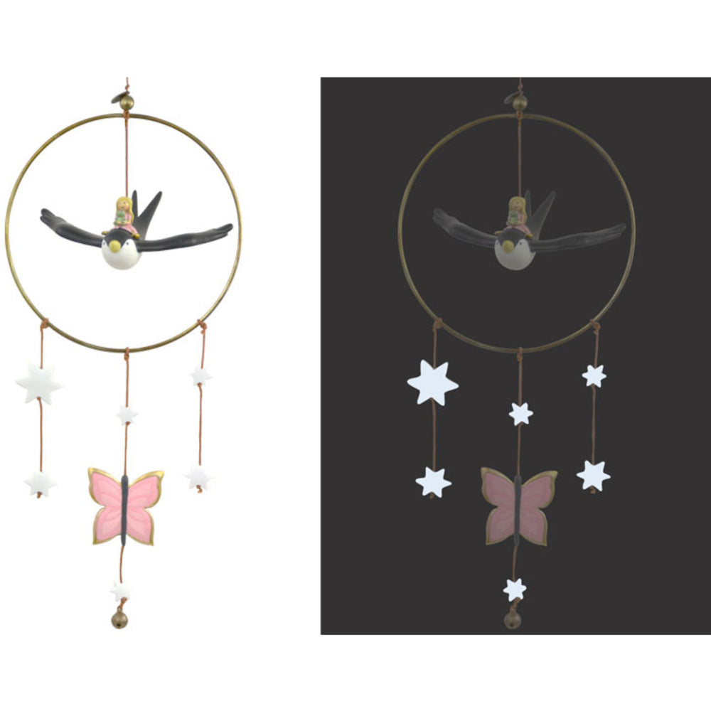 Tag børneværelset til nye højder med Kids by Friis Drømmefanger Uro, Tommelise. Denne charmerende uro indeholder luftballoner og en klokke, perfekt til at stimulere sanserne og berolige dit barn før sovetid. Med en selvlysende stjerne skaber den en magisk atmosfære, der fascinerer og beroliger. Designet er både sikkert og let at montere, hvilket gør det til en ideel løsning for travle forældre. Et tidløst tilbehør til ethvert børneværelse, der skaber glæde og tryghed for hele familien.