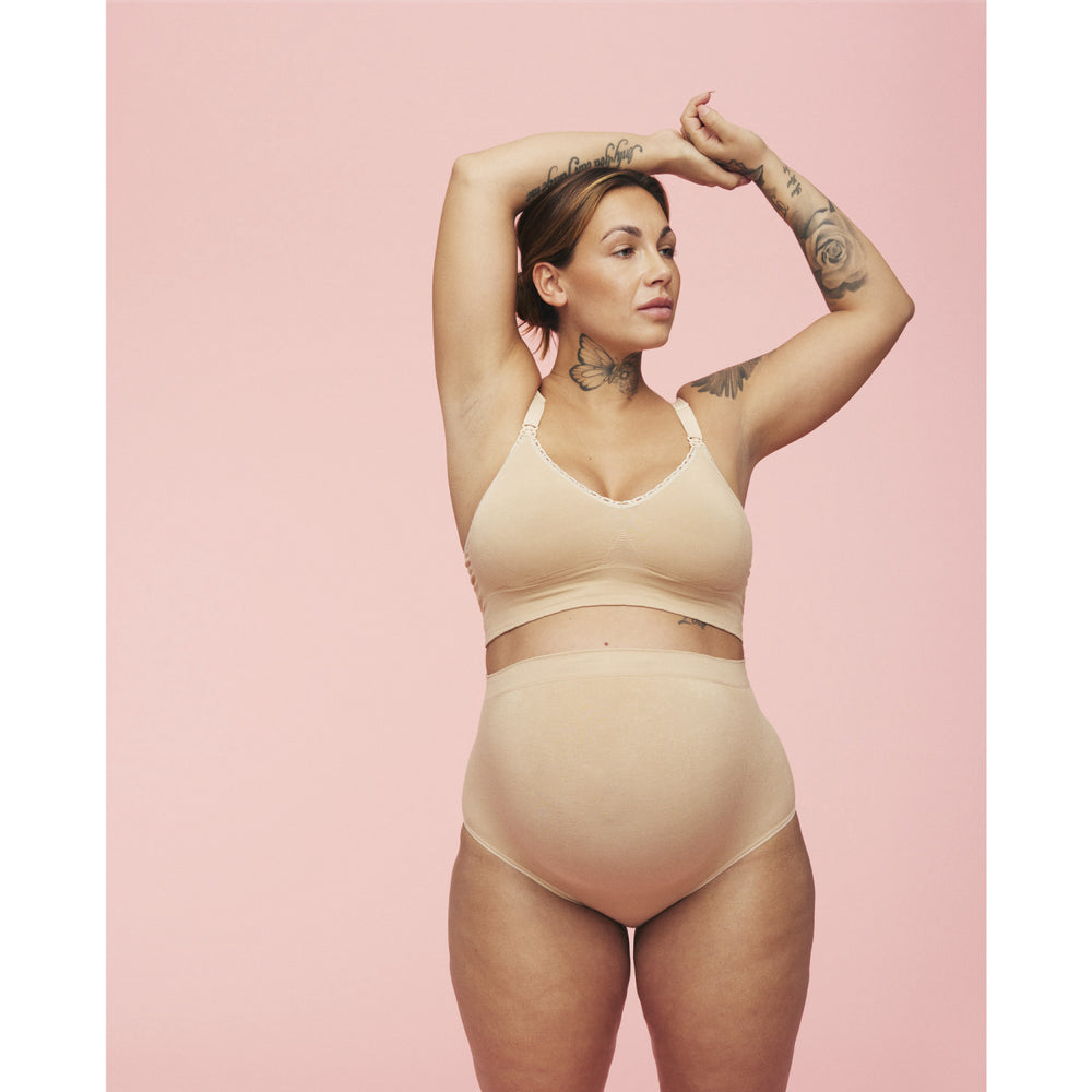 Oplev den optimale støtte og komfort med Momkind Sand Graviditetstrusse, designet specielt til at tilpasse sig din voksende mave. Disse trusser har indbyggede støttepaneler, der effektivt aflaster både maven og lænden, hvilket gør hverdagen mere behagelig under graviditeten. Den bløde og brede kile øger komforten, mens de elastiske kanter sikrer, at intet strammer eller irriterer.