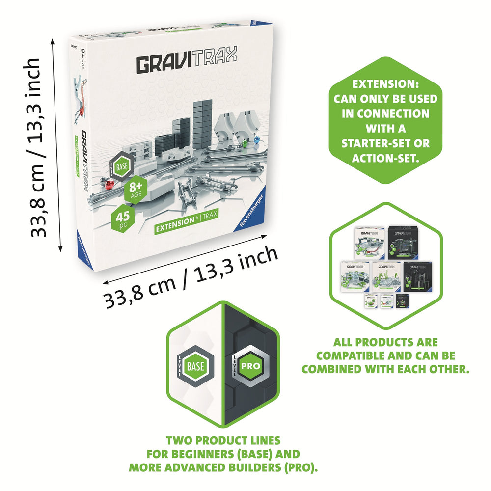 Giv børnenes kreativitet et boost med GraviTrax Extension Trax sættet, der byder på endeløse muligheder for at udvide og forbedre deres eksisterende kuglebane. Dette tilbehørssæt tillader børn at designe mere komplekse baner, udvikle problemløsningsfærdigheder og forbedre deres forståelse af tyngdekraft og kinetik. Let at samle og skille ad, hvilket gør opbevaringen praktisk og sikrer langvarig holdbarhed. Perfekt for børn fra 8 år og opefter, tilbyder det timevis af underholdende, interaktiv leg, som hele familien kan deltage i.