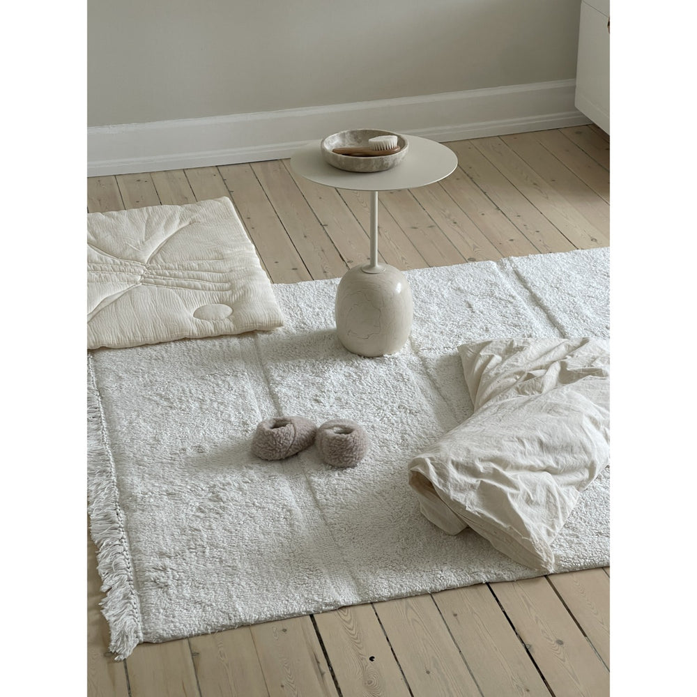 Skab en hyggelig og sikker atmosfære i børneværelset med We Are Bitte Ivory North Gulvtæppe. Fremstillet af økologisk bomuld, tilbyder dette tæppe ikke kun blødhed under små fødder, men er også let at vedligeholde med maskinvask ved 30 grader. Det stilrene design passer perfekt ind i ethvert rum, og dens skridsikre egenskaber sørger for at legeglade børn kan tumle sikkert. North gulvtæppet forener stil med praktisk brug og tilfører en følelse af varme og komfort til familiens hverdag. Alder: Fra nyfødt Materialer: 100% bomuld Mål: 140 x 220 cm Vaskeanvisninger: Vask på 30°C.