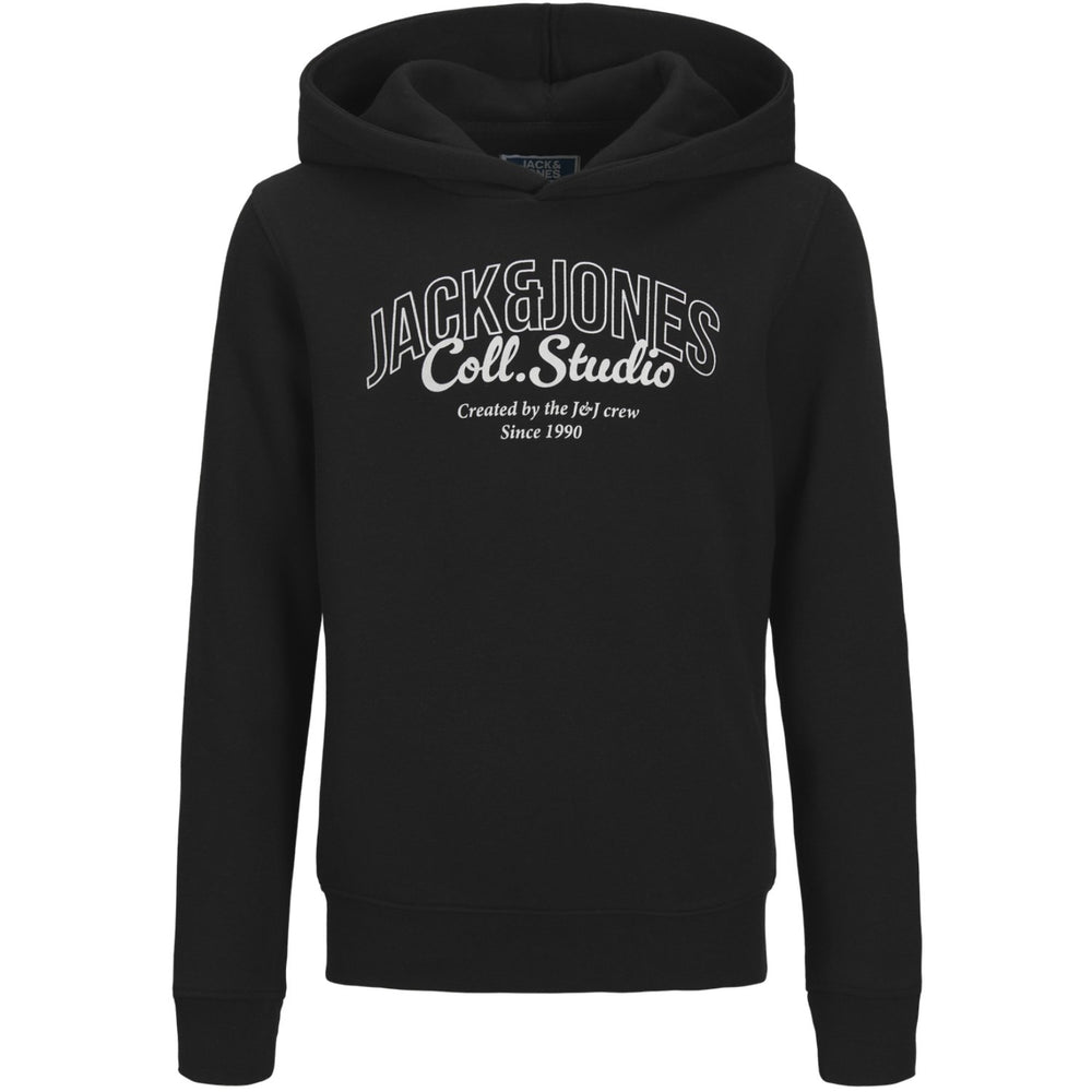 Jack & Jones Junior Black Big Print Jjmakoto Sweat Hætte Jnr