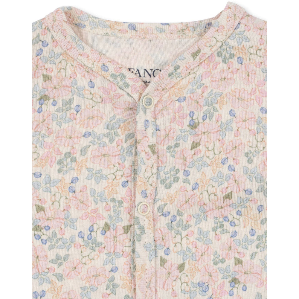 Oplev vores Konges Sløjd Fanga Prato Fiori Fio Pj til de allermindste. Denne dragt er fremstillet i blødt økologisk bomuld, der sikrer komfort hele dagen. Udstyret med en praktisk trykknapåbning langs hele fronten og ned ad benene, gør det daglige skift nemmere. Den perfekte kombination af funktionalitet og sødt design til dit barns garderobe.