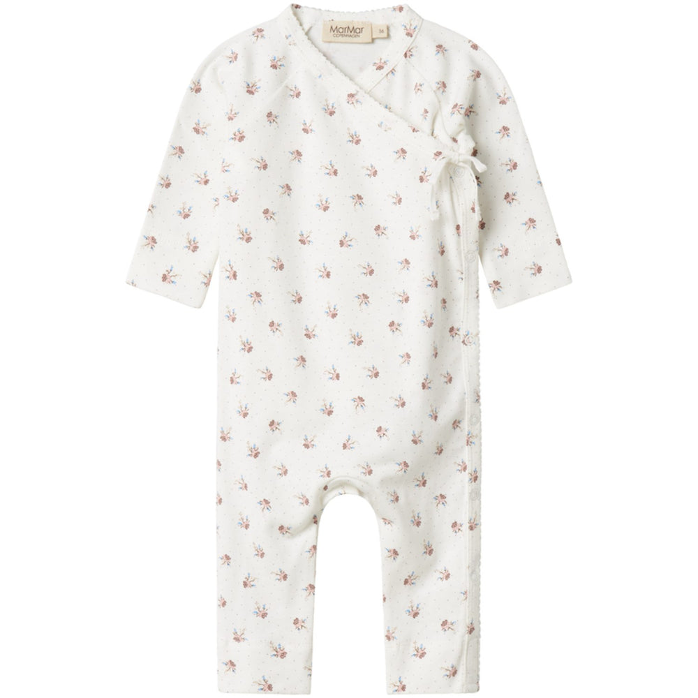 Denne langærmede MarMar sparkedragt er designet med en praktisk vikleåbning, som sikrer nem påklædning af din nyfødte. Fremstillet i blød modal med et delikat Little Sakura-print, kombinerer den stil og behagelighed. Trykknapper og bånd fra halsen og ned langs benet gør den ideel til hverdagsbrug.