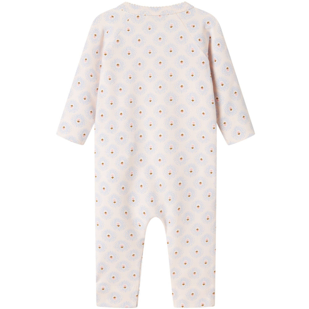 Denne langærmede MarMar New Born vikledragt er ideel til din lille skat. Fremstillet i blødt modal med et delikat "Little Tulip" mønster, sikrer designet med trykknapper og bånd let påklædning og komfort. Perfekt til hverdagsbrug og holder formen efter vask.